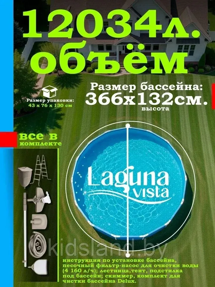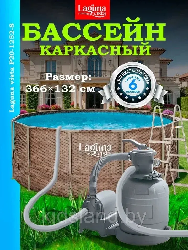 Бассейн каркасный 366х132см Laguna Vista (лестница, песчаный фильтр, тент, подложка, скиммер, набор для чистки